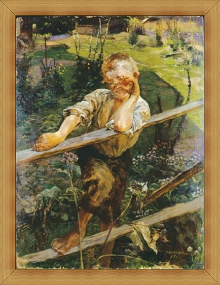 Tylko ten jeden obraz z dzieckiem w roli głównej znalazłam w twórczości Juliana Fałata, który wierny realizmowi, także wzbogacał swoje obrazy  doświadczeniami impresjonizmu.