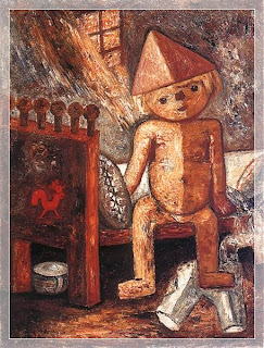 Dzieci Tadeusza Makowskiego obdarzone są kształtem drewnianej kukiełki, jakby były wystrugane kozikiem przez ludowego twórcę. Mają rysy uproszczone, ledwo zarysowane.