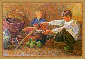Dosyć często malował dzieci Eugeniusz Zak - polski malarz i rysownik żydowskiego pochodzenia. Artysta wypracował swój indywidualny styl pełen zadumy, melancholii i nostalgii, odznaczający się swoistą dekoracyjnością oraz kolorystyką.
