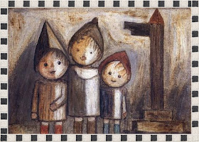 Dzieci Tadeusza Makowskiego obdarzone są kształtem drewnianej kukiełki, jakby były wystrugane kozikiem przez ludowego twórcę. Mają rysy uproszczone, ledwo zarysowane.