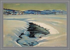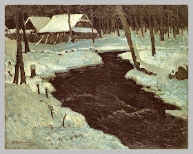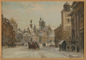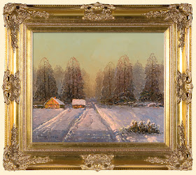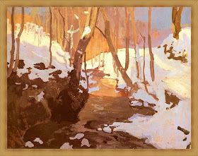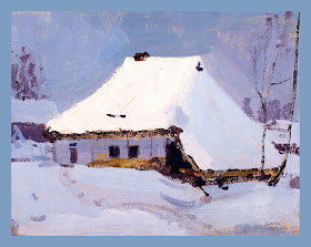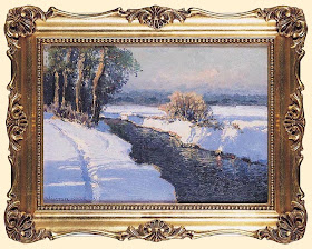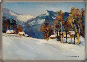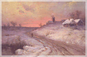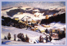 Erno Izaak Erb  zauroczył mnie zimowym pejzażykiem o ciepłej kolorystyce, raczej nietypowej dla zimowych krajobrazów.